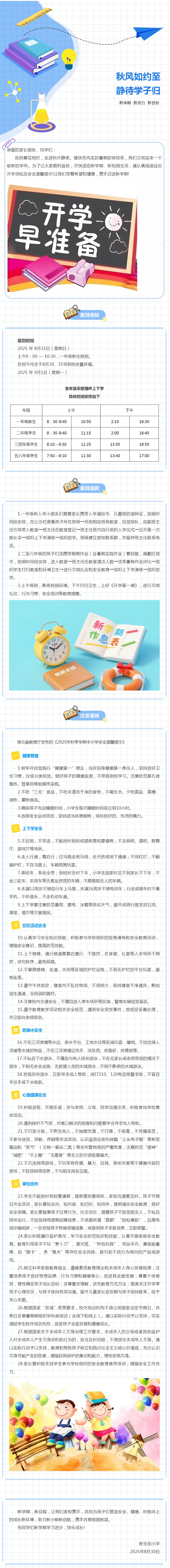 秋风如约至 静待学子归——新生街小学2025年秋季学期开学须知及安全温馨提示