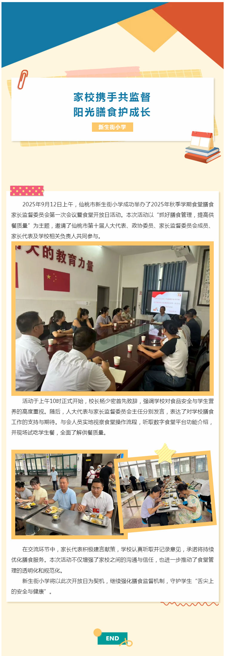 家校携手共监督 阳光膳食护成长——新生街小学食堂开放日暨膳食监督委员会会议顺利举行