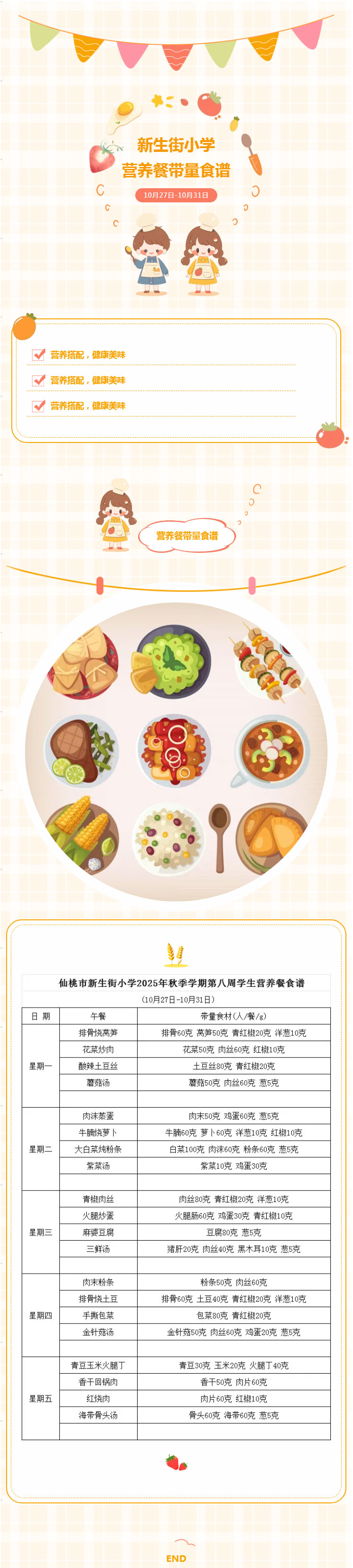 美味“时”光|仙桃市新生街小学第八周学生营养餐带量食谱(10月27日-10月31日)
