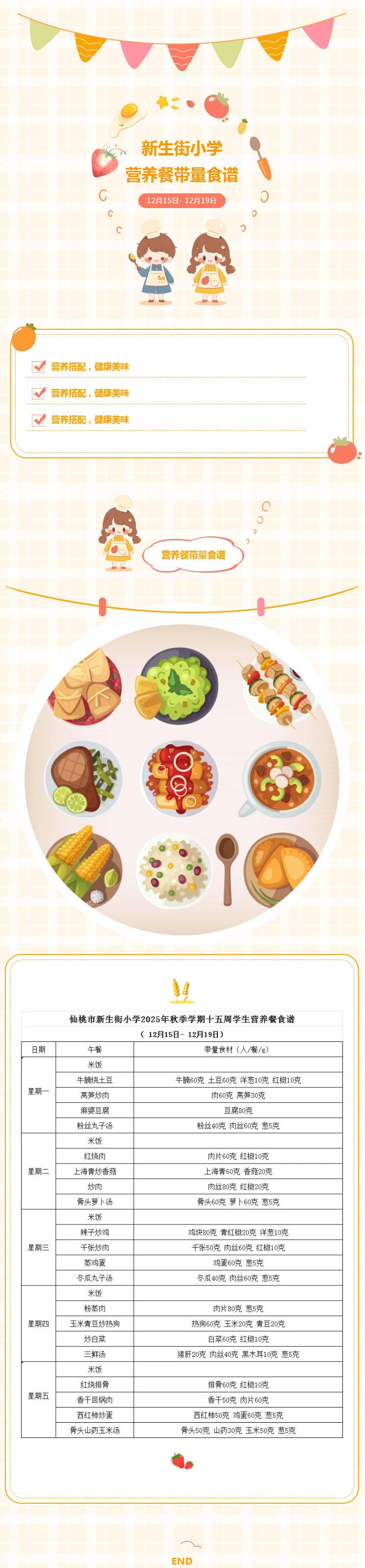 美味“时”光|仙桃市新生街小学第十五周学生营养餐带量食谱(12月15日- 12月19日)