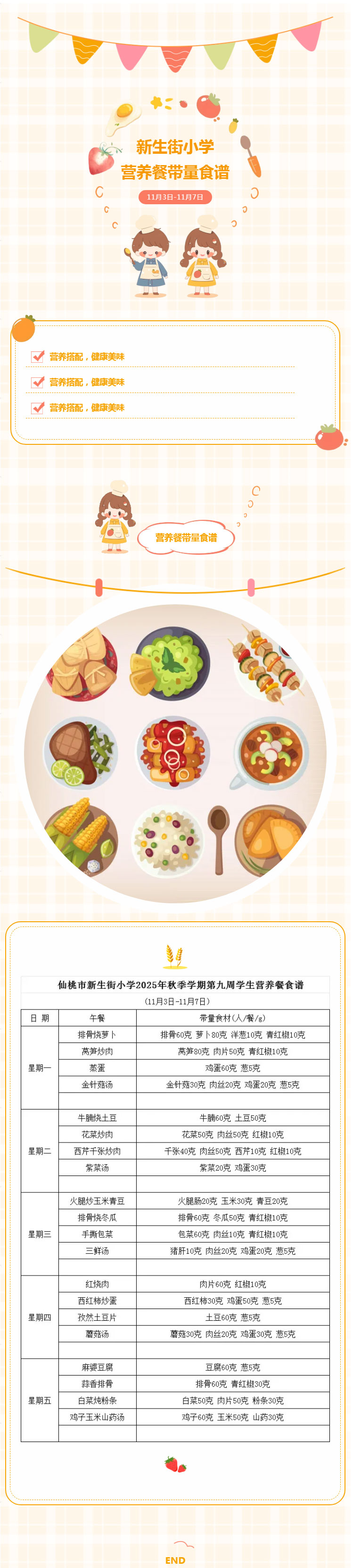 美味“时”光|仙桃市新生街小学第九周学生营养餐带量食谱(11月3日-11月7日)