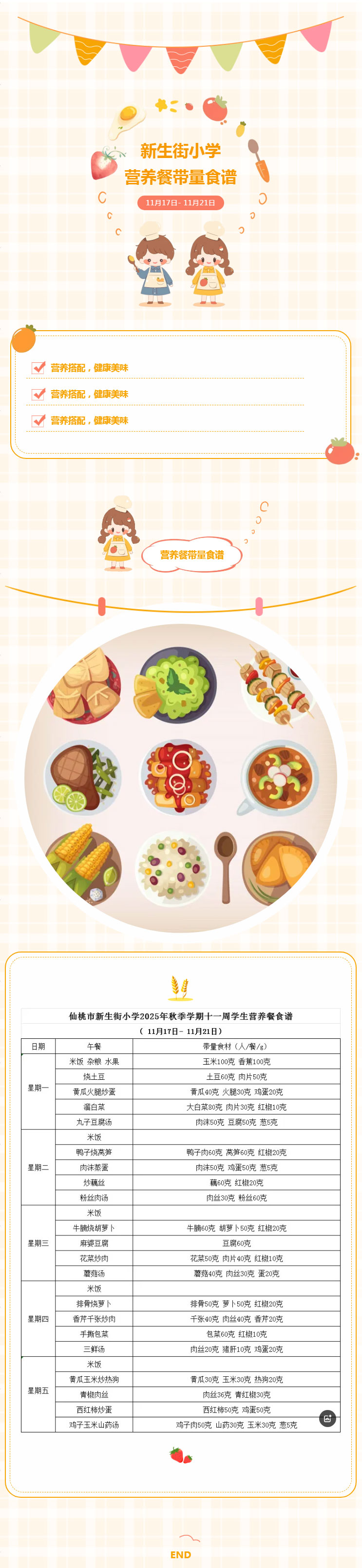 美味“时”光|仙桃市新生街小学第十一周学生营养餐带量食谱(11月17日- 11月21日)