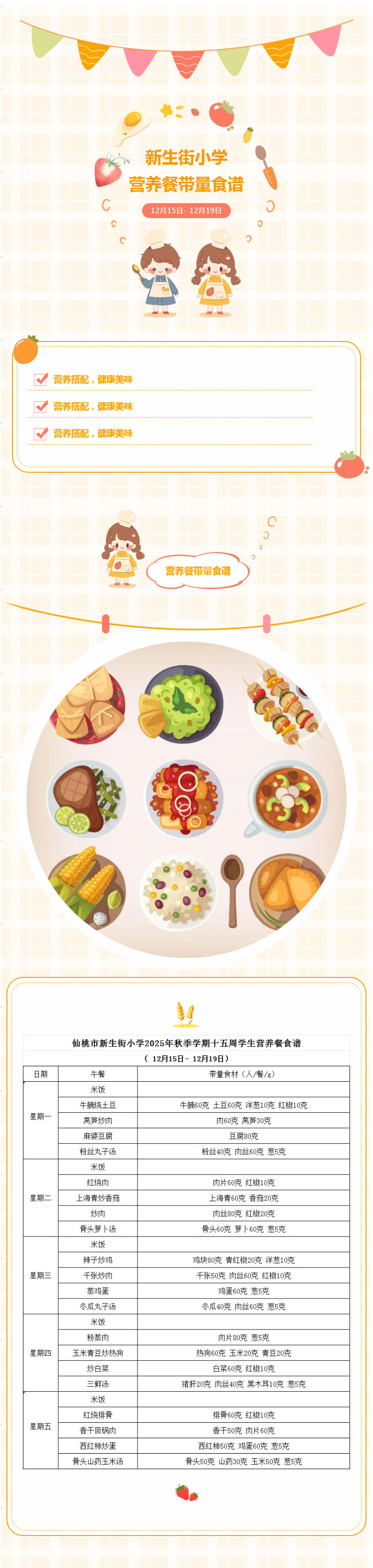 美味“时”光|仙桃市新生街小学第十五周学生营养餐带量食谱(12月15日- 12月19日)