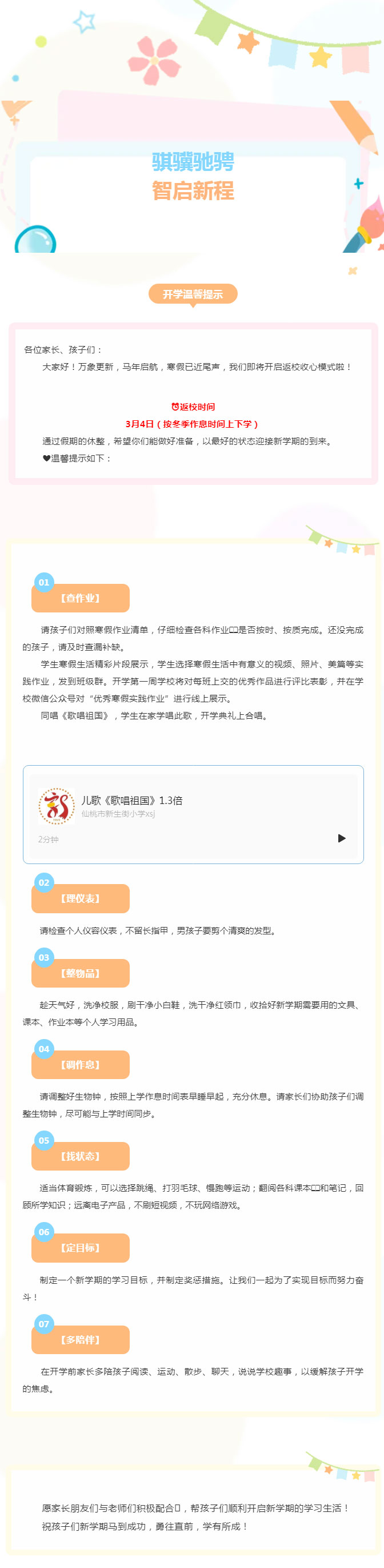 骐骥驰骋 智启新程—新生街小学2026年春季学期开学温馨提示