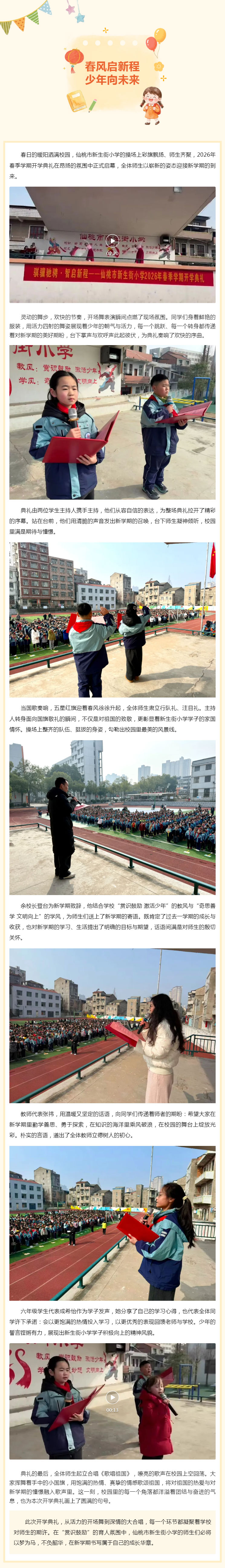 春风启新程 少年向未来——仙桃市新生街小学2026年春季学期开学典礼圆满举行