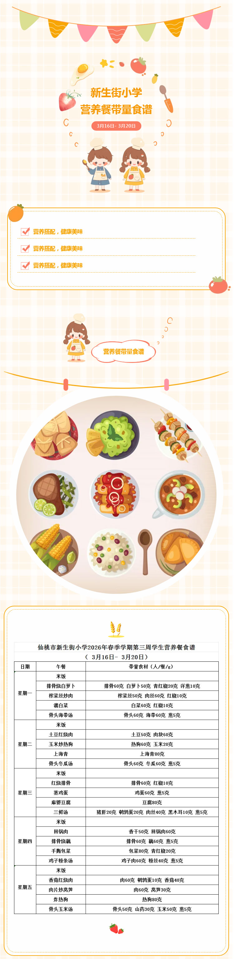 仙桃市新生街小学2026年春季学期第三周学生营养餐食谱(3月16日- 3月20日…